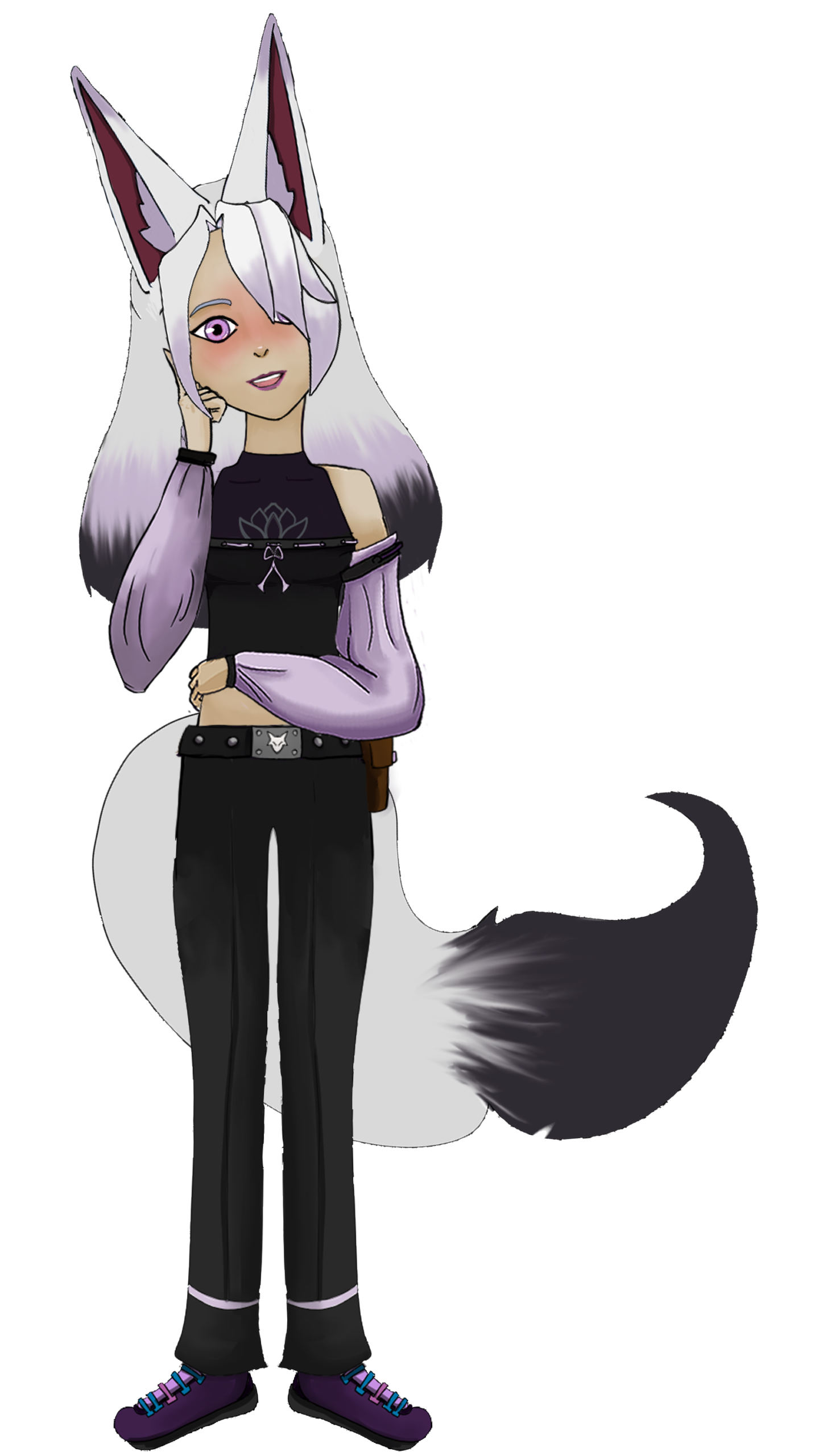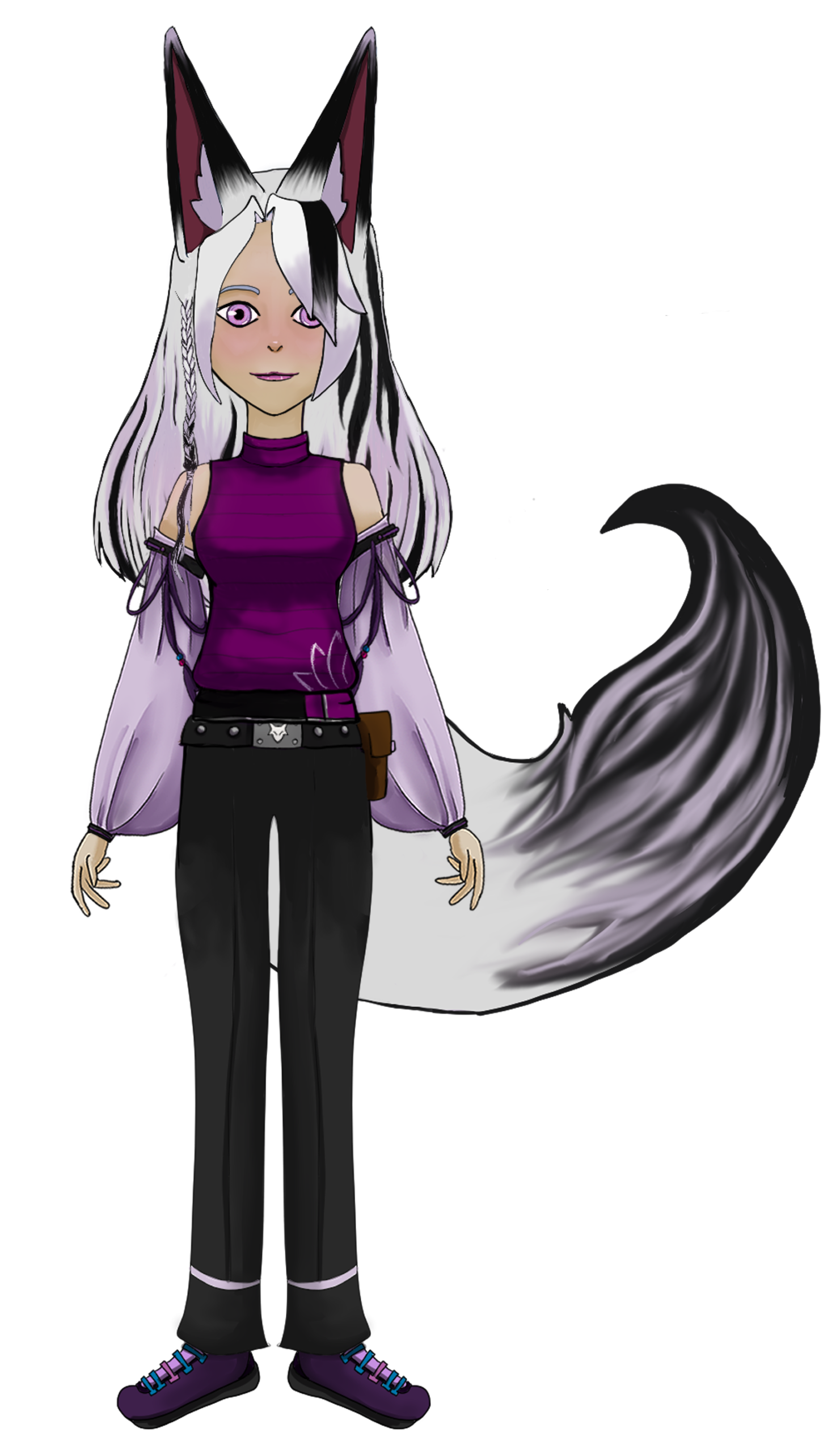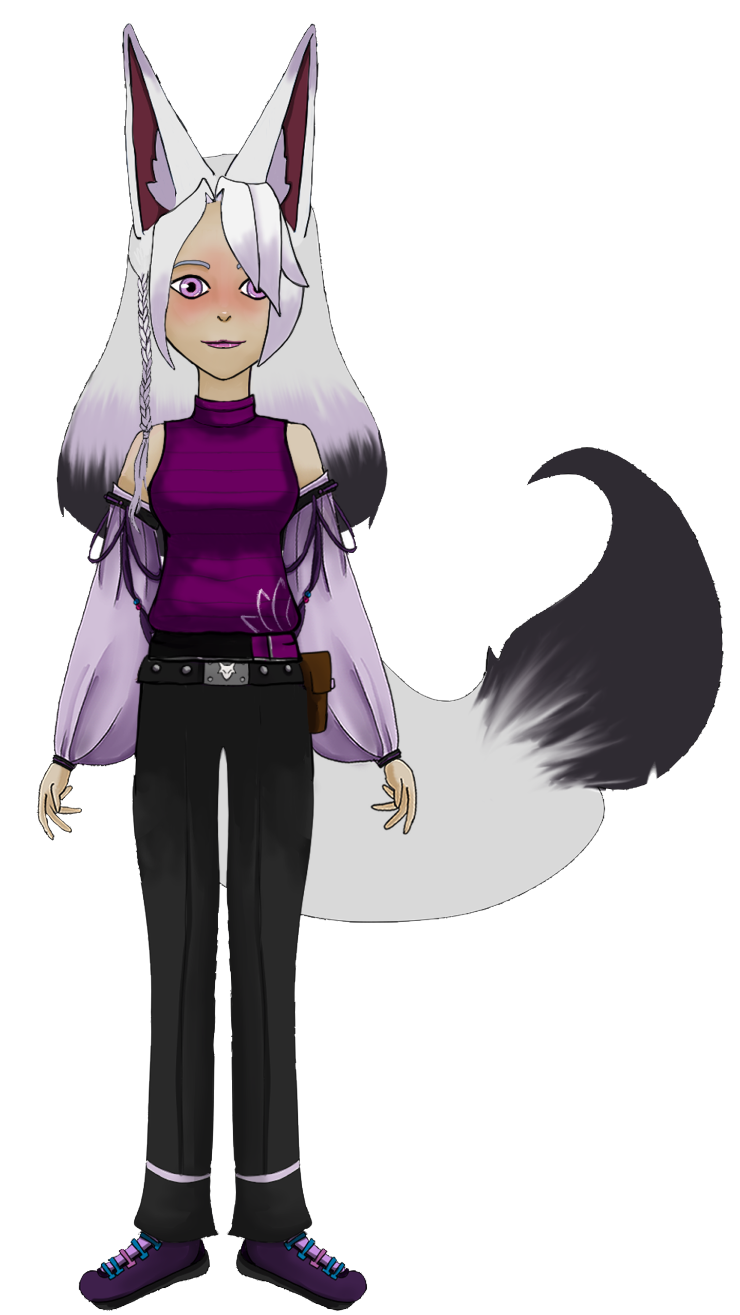 A fox girl in her purple outfit. There was not much behind her design minus the fact that I wanted long hair that can swish around.