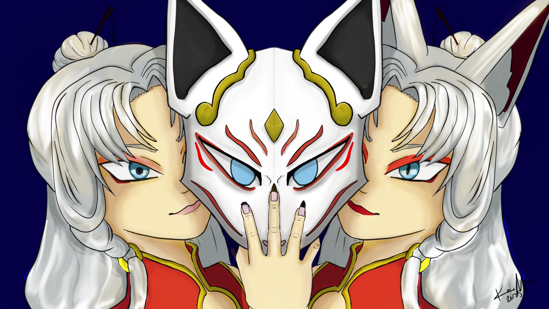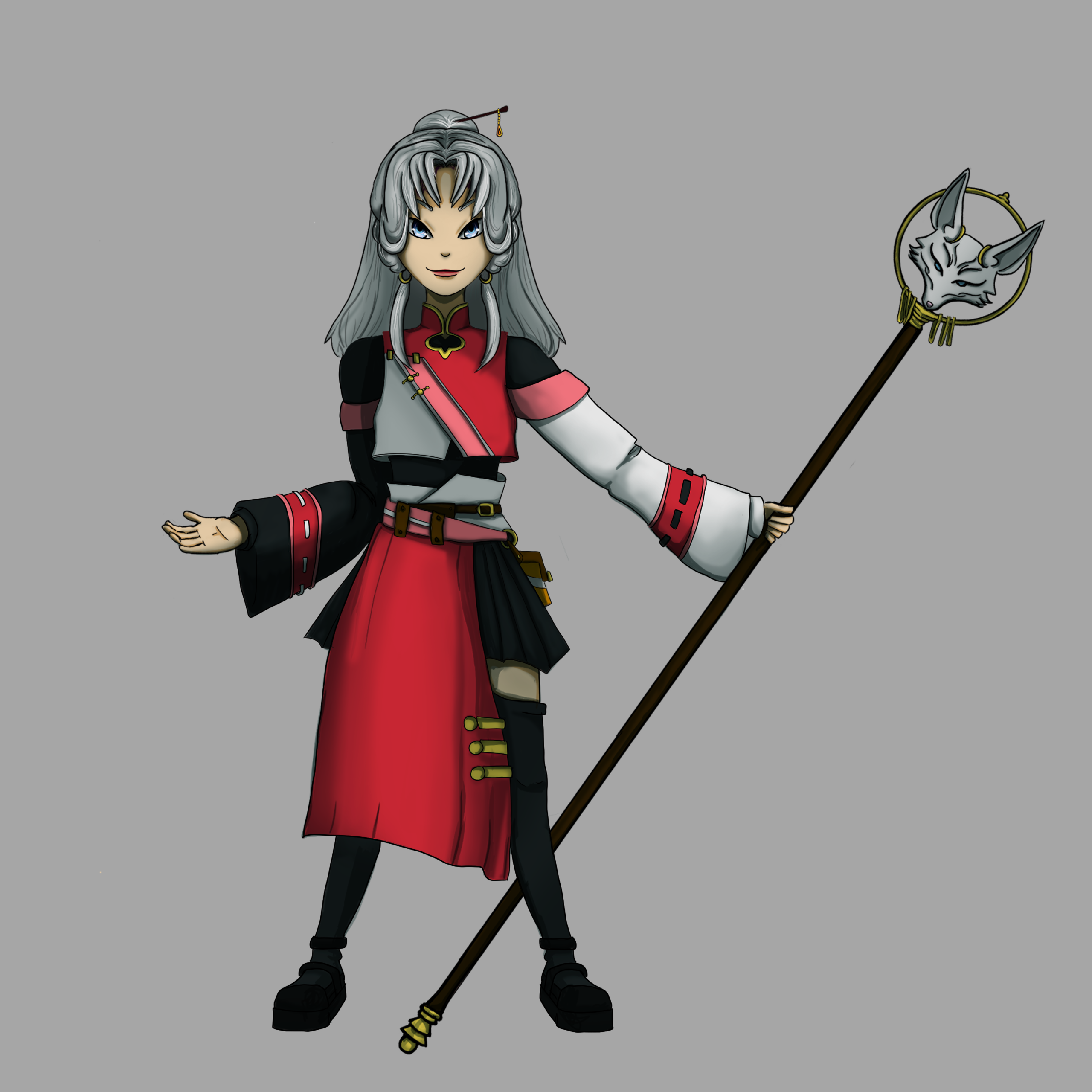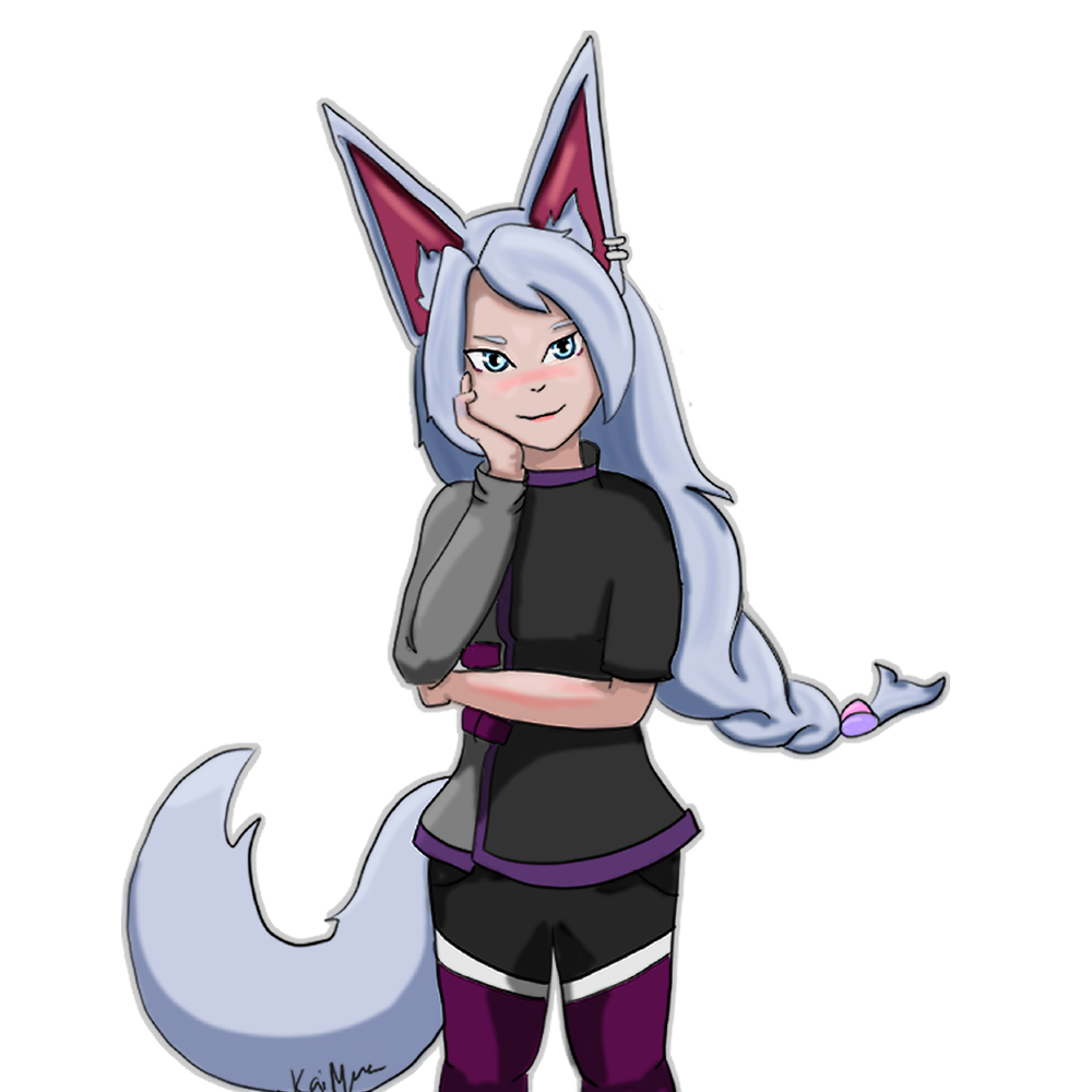 A fox girl in her purple outfit. There was not much behind her design minus the fact that I wanted long hair that can swish around.