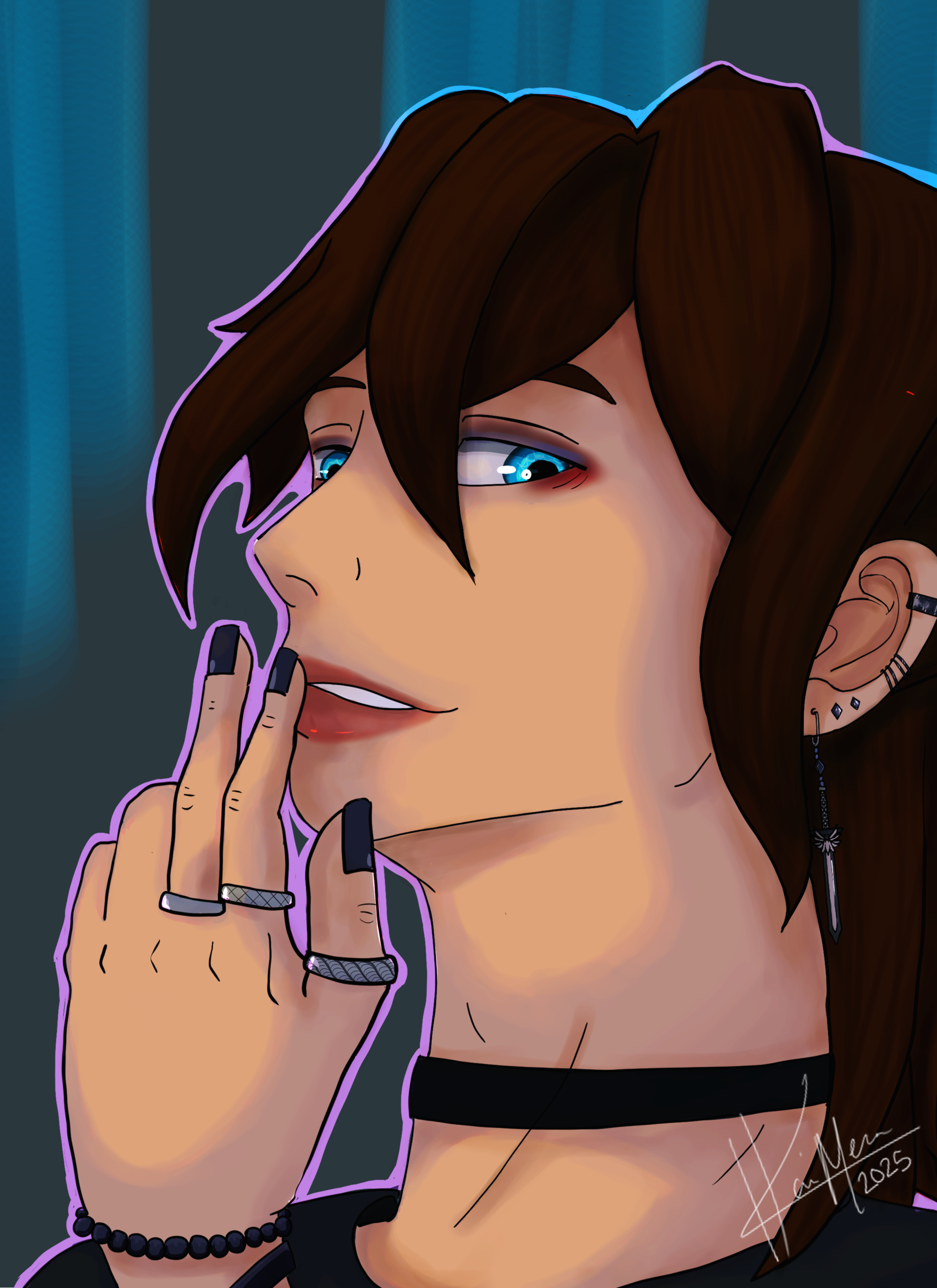 This is a friend’s first character, and I loved his design so much that I wanted to draw it. I was inspired by all the splash art from the games I play, like Genshin Impact and Wuthering Waves.